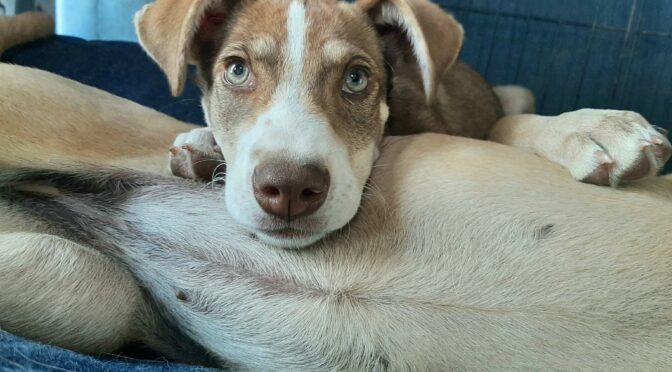 She has been fostered together with 3 other pups and blossomed – Tillie is super sweet, affectionate and tender.