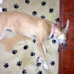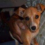 Janie was found as a very tiny puppy lost and wandering on a busy corner. She was almost run over by several buses as we passed by, so we stopped and scooped her up out of harm’s way. After asking all the people standing around, circulating through the neighborhood asking vendors and passersby if they knew where she had come from or who she belonged to and receiveing head shakes and negative answers, we took her home with us.