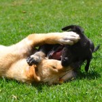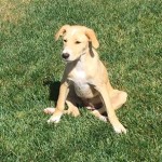 He called mutual friends and asked them to help. They picked her up, and we took her. Alana is a darling puppy, friendly, sweet, and very smart. She currently shares a run with mama dog Nina and her seven puppies, and they all get along great.