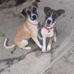 After warming up she’s sweet and cuddly and comes along well with kids and other dogs. She’s going to be medium sized.