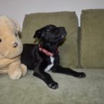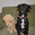 Babe is now about 4 months old, healthy, sweet, and playful. She loves people-loves to cuddle and loves to play. She is great with other dogs and puppies, and is okay with cats, although a little fearful of them. She is a sturdily build puppy and looks like she will be smaller to mid-sized. She has a wrinkly face and double chin, making her look like she has some Shar Pei in her.
