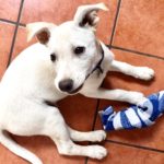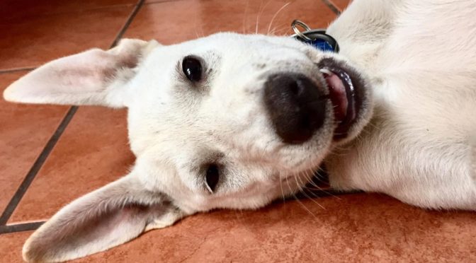 Our student volunteers carry on with the learning process every Saturday morning, luring the pups, playing with them and handling them. They are exposed to healthy, slightly older puppies and to tolerant adult dogs and are growing into friendly, social and playful puppies. They are being fostered by the fabulous Kristin Bush and live in a stimulating and safe environment with her and her adult dog Theo.