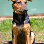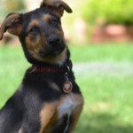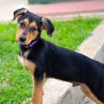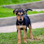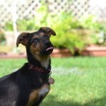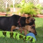 Bam Bam is a darling puppy, friendly, outgoing, playful and smart. He plays well with other dogs and puppies. He is being clicker trained and has already learned many basic behaviors including “sit”, “down”, a hand target, and to walk on a leash. He has a great recall and is learning to sleep in a crate.