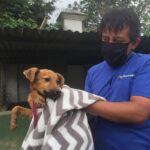 In May, we rescued six feral puppies (three males, three females) from a truly horrendous situation. They were trapped in a rubble and garbage-filled space about 12 feet in size. They appeared to have been there for months, judging from the feces and flies and scummy rainwater in old dishes. They were in really terrible shape, terribly malnourished, infested with fleas and internal parasites, and very fearful, of course. We brought them to the center, bathed, wormed, and treated them for fleas. All of them had fly strike on their ears, so we had to remove the crusts and hopefully the fly eggs.