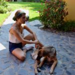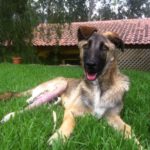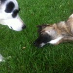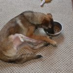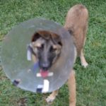 Chance arrived with us as a “foster” from a veterinarian we don’t work with. He had a fractured femur that had already been splinted, and we thought we were signing up for a simple recovery. Unfortunately, the splint was incorrectly applied, and Chance had to undergo a surgery to pin his femur. He also had a crushed tail that had not been noticed, so that had to be amputated, as well. It took several tries to get the tail healed, as it was infected and Chance is a very bendy, Houdini-like kind of pup. So three amputations later, he now sports a racing model stump tail, which he still manages to wag without stopping.