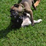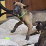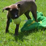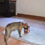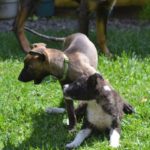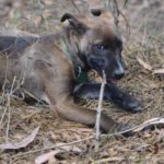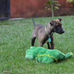 He is now a sweet, friendly, playful little pup. He approaches people happily in his known spaces and is great with men, children, and other dogs. He runs happily in the coffee farm, rides calmly in the car. He can still be a bit wary of new people and dogs outside of his comfort spaces, but us getting bolder and more confident every day.