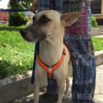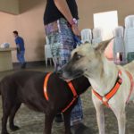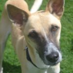 Daisy has filled out and is now a sleek, beautiful and very loving dog. She is now up at the rescue and beginning training and doing extremely well. She is very smart, food motivated, and extremely affectionate and friendly. She walks beautifully on leash, is unfazed by hustle and bustle in town, and loves people. She gets on well with other dogs, rides great in the car, and is pretty much a dream dog.