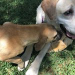 Dana was in good shape. Someone had been caring for her. After her initial wariness of the other dogs and puppies, she settled right in. She loves all the dogs and puppies she has met at the rescue and in her foster home. She is sweet and friendly and adores people.
