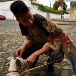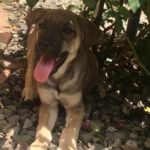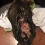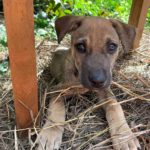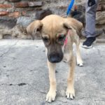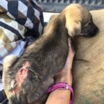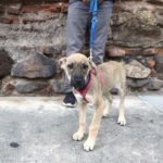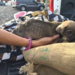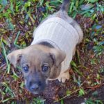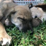Dembe was rescued by Francesca. This little guy had been tied into a plastic bag with another sibling and tossed like garbage into a semi-abandoned coffee farm. A kind farm worker found them and saved them. The sibling was okay, but Dembe had a huge open wound on his back. Flies had laid eggs in it and he had maggots crawling around in the wound. The worker contacted Francesca as he thought the puppy would die.
