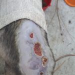 Dembe almost did die. The wound was infected and had over 30 maggots in it. He had a large swelling on his abdomen, and he was anemic and malnourished. He is quite a fighter and with good care and food he survived.