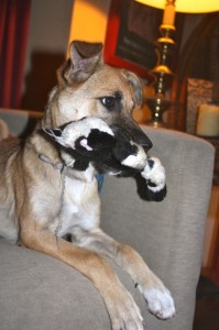 Eva (Pepper) with a toy