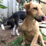 She was found in pretty ratty condition curled up on a stoop in San Juan del Obispo. She was just old enough to be coming into heat soon, and we couldn’t bear to see her being attacked by the packs that descend on the females then. Once we brought her in, we discovered that she had quite a few other things going on. She had a large umbilical hernia that needed repair, deciduous teeth that had to be pulled, floppy double dew claws that needed removal, and aural hematomas that needed treatment, too.