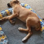 She is healthy, loves her puppy and big dog friends, and loves kids and people of all sizes and ages. Fenix has started her training with us. She is learning her sits, downs, and hand targets and she is a a smart and eager learner. She is sleeping in a crate at night.