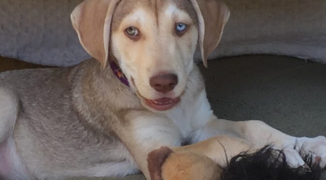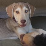 He isn’t very ‘flaco’ anymore, so the name doesn’t really fit this dreamy-eyed little pup. Flaco is about 3 months old. We have no idea of his mix, although with those velvety floppy ears there has to be some hound in there. He has two-toned eyes, and a short, soft coat. We never met his parents, so have no idea of his adult size.