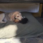 Flaco is a very sweet, bumbling and roly-poly pup. He follows all the bigger pups and dogs and tries his best to keep up with everybody, but he really is the little kid on the block! He loves people and did great with all the kids in our Saturday program, too.