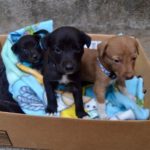These little pups were tiny and infested with worms. They responded immediately to the deworming and thrived on puppy chow mush, lots of cuddling and love. They learned how to be dogs from the other puppies and adults in the rescue, and we separated them and placed each in wonderful foster homes when they were about ten weeks old.