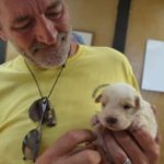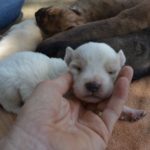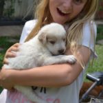 Gascon is a gorgeous creamy white and light tan pup. He is not available for adoption yet, as he is not yet weaned. He will be available mid July.