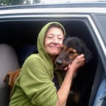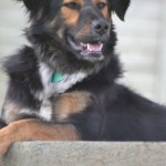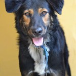 Guapo is a gorgeous Setter/Golden/Rottie mix (maybe). He was rescued by Paula Hillman after she found him abandoned and severely injured in a field. He had a shattered pelvis with a bone protruding, and was skeletally thin. She took him in and nursed him back to health, but after several months she decided that he was too much for her and asked us to take him. When we took Guapo in he was physically healed, but had many severe behavioral problems. He was extremely reactive toward joggers, bicyclists, and some other dogs. and had bitten several people.  He had severe food guarding issues. He leaked urine whenever he greeted you. Guapo has been a favorite dog at the Cerro since his arrival. He is very loving and affectionate, and gets along with all the other dogs. He is beautiful, loves to play and is great with children. He still has some leash reactivity and needs consistent work with adding food to his dish. Guapo’s obedience in lower distraction situations is excellent. He needs continued work in higher distraction areas. Guapo needs a lot of daily exercise to help him stay calm. He has moderately high anxiety and needs structure and calm entries and departures to keep him relaxed. He loves other dogs, and does well with most other dogs, but loves to be the center of attention, so would do well as an only dog. Guapo no longer triggers on joggers or cyclists. Just a gentle reminder to target your hand or look at you is enough to redirect him to make a good choice. He was adopted by Ben and Mary Florence in the summer of 2014, and we sent him on to New York City to join them when they moved.