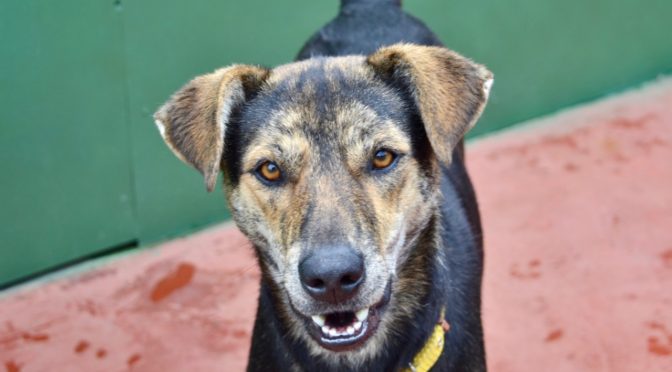 Gus is about a year and a half old. He was one of a littler of 7 puppies, born in San Juan del Obispo last spring. We took in 5 of his siblings, and all are in the US. Gus and one other puppy were placed locally, but after over a year, the owner decided that he didn’t want Gus anymore.