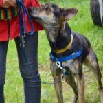 Gus had no training when we got him, and was quite jumpy and a little rambunctious. He loves food, and so took to training like a duck to water. He is smart and really loves playing training games with us. He now has all his basic obedience behaviors and even crates well.
