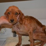 Heather was in truly appalling condition when volunteers Jason and Alison brought her to us. This little creature apparently had an owner, and yet still was starved and suffering from terrible mange.