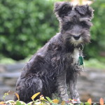 Hilde is a purebred miniature Schnauzer puppy, supposedly born March 23, 2013. We think that she was younger than this, as she still has not begun to teethe (as of July 29, 2013).Hilde was dropped off to the Revue office by a woman who had bought her about ten days previously from a local pet shop and ten days later decided that she didn’t want her. She was in reasonably good shape, but did have severe diarrhea which took a couple of weeks to resolve.