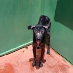 Hunter has made an incredible recovery, both physically and behaviourally. He has a glossy black coat and a bounce in his step. His a happy dog who now trusts people and approaches for petting and treats. He gains more trust with people every day. Hunter has his basic obedience behaviours, walks nicely on a leash, and is great off leash. He has a good recall, and is smart and food motivated. He gets along well with the other dogs at the rescue. We would recommend a family with older or no children for Hunter as children can be loud and move quickly and erratically and he can still shy away from loud noises of brusque or threatening movements.