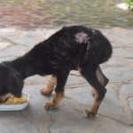 Little Bug was totally dehydrated and infested with parasites. She spent several days in critical careat the vet on I/V fluids, and having her burns treated, and thankfully she pulled through. This little pup loves life and is a fighter, indeed!