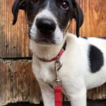 She is learning basic behaviors, and is getting lots of great socialization in town with our volunteers.