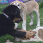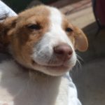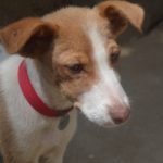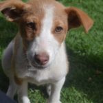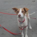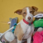 Mancha is white with gorgeous reddish-tan markings and pale eyes. She is sweet, affectionate, and very playful. She gets along great with her sister, all the other pups at the rescue, and with the big dogs, too. She is smart as a whip, and has quickly learned her base obedience behaviours, which we teach through positive reinforcement (food). She rides great in the car, and we are working on her crate training.