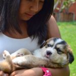 Although their mama is a medium sized dog, we think that Mapache will be a big dog. She will also have long hair. Mapache is about 10 weeks old and is available for adoption.