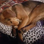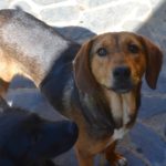 Matilde is Tomasina’s daughter. She is about a year and a half old, and looks like a black and tan hound mix. She is mid-sized at 35 lbs, and is strong, sleek and lovely.
