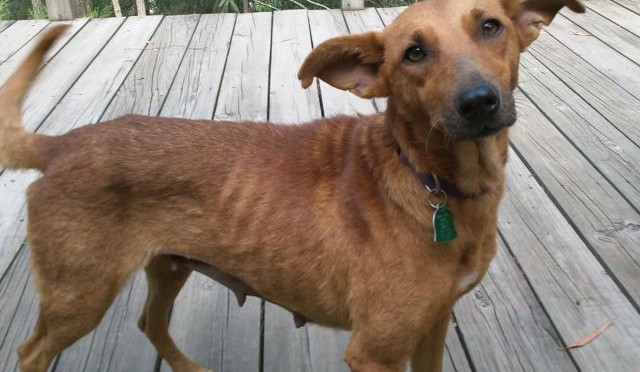 Midge developed TVT or sticker tumors (A sexually transmitted form of venereal cancer common in un-sterilized dogs in Guatemala. Luckily, the condition is curable with a series of chemotherapy treatments administered intravenously over a month or two. Once cured and sterilized, Midge was adopted locally.