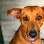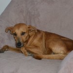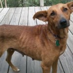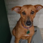 Midge is a small, short haired mix breed dog. She is dark gold in color with a blackish muzzle, and was in very poor condition when she came in, thin, with a rough, dry coat. She had obviously had many litters. She is about three years old. Sh is an extremely sweet dog-very affectionate, bonding quickly and easily to people, and good very natured.