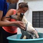 At the end of June, 2015 we were asked by Dr. Jim and two young volunteers, Jenna and Jillian Guffy to take in two geriatric dogs from another group. These dogs had lived their entire lives at this other site, were blind, and were in terrible condition. They lived in a pen with other dogs, and since they were blind they could not defend themselves or their food from the other dogs.
