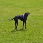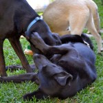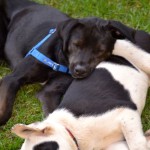 He is the acknowledged Puppy Meister at the rescue, and is wonderful with all the pups and dogs. He loves to play with the puppies and is endlessly patient with them.