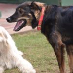 Nia has blossomed in the more outdoor, open air setting of the rescue. We have polished up her basic obedience skills and she now has a stellar recall. She LOVES the other dogs and pups, and plays well with them. We have had zero issues with her on or off-leash with new people in the open space of the rescue, and she has been absolutely fine with older children, too. She does exhibit some wariness with new men entering, but warms up quickly with treats. Like many dogs, she is not comfortable being pet by strangers when she is on leash, and she shows her discomfort very clearly by stiffening and will growl if the stranger perseveres. We ask people not to pet her until she is comfortable with them and approaches on her own accord.