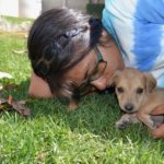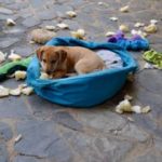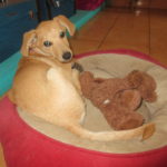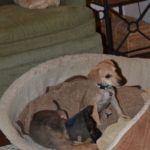 She is a survivor like few other puppies we have met. We don’t know what breed mix she is, but it seems like she will be a small dog. She currently weighs about 13 lbs.