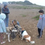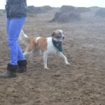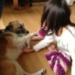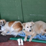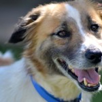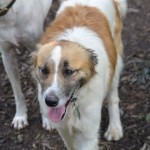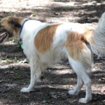 Peluche arrived with us on July 21, 2013. His ears were still scabby and healing, but otherwise he was a healthy, lovely dog. He is mid-sized, approximately 35 lbs, white with liver patches and a long, plumy tail. He was between 3 and 4 years old.