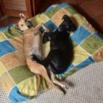 Rhina loves to play with puppy and doggy friends, and will play tug with them, and share toys in play, but she doesn’t share valued resources like food, chews, comfy beds or your lap very well with other dogs. She has no issue sharing these things with her human buddies, but this little lady does like to have her space. So we think she would do best in a home as an only dog, or with an older, more mature dog who is happy to respect her boundaries. We are happy to give you more information on dog-dog resource guarding (please check out iSpeakDog to learn more about this very normal inter-dog behavior)
