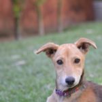 She is smart and connected and has quickly learned her basic “sit”, “down”, hand targeting, coming when called, walking on leash, and hopping in and out of the car. She is working on her crate and house training and doing well with both, but is not quite fully trained in either.