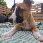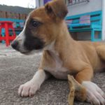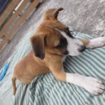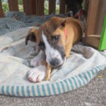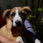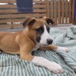 Risa was about 3 months old on intake, mid November. She is a pretty tan shorthaired pup with white markings and a black mask. She is friendly, outgoing, and loves people and dogs.