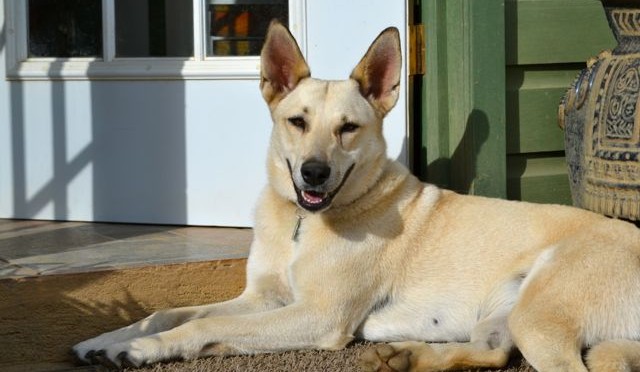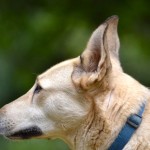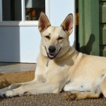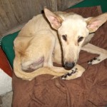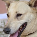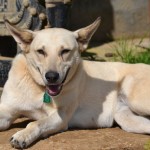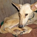 When we first saw her in late December of 2011 Suzanna was a skeletally thin blonde German Shepherd mix who was desperately scrounging for anything edible. She had recently given birth, though there was no sign of her babies. She was literally skin, bones, and swollen teats. Here ears appeared completely outsized for the size of her bony head and starved body. We estimated that she was a couple of years old when we found her, possibly three.