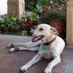 We visit Suzanna and Fernando in their home in Guatemala City every couple of months, spending some time cuddling with this lovely and well loved girl, enjoying hearing about the duo’s adventures, and of course bringing some fresh baked liver treats for Suzanna. We visited just last week to drop off Xmas goodies for both of them, and Suzanna and Fernando came to Antigua on Friday for a short visit, too. One of her ears was bothering her a bit, so we took her to Dr. JP for a check and some ear drops. He checked her and saw nothing at all out of the ordinary health-wise. She looked fabulous and was as happy and sweet and waggy as always.