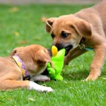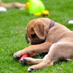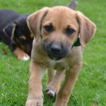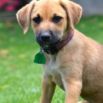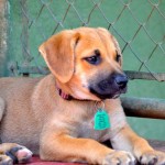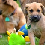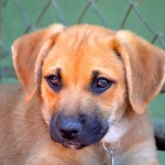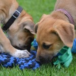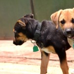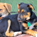 Tessa and her three sisters were brought to us by a good samaritan who found them in an abandoned field. She had the mother spayed, and she is being cared for by a group of neighbors. The puppies needed proper homes before something happened to them. We brought them in on April 13, 2015, and the pups lived for almost two weeks amongst the cats in their areas as we were full up with puppies in the dog area and couldn’t risk mixing in unvaccinated puppies with our partially vaccinated pups. This group of four are supremely cat friendly because of this early experience! Once the older pups were placed, the newbies moved up to Dog Town to begin learning the ropes with their own species.