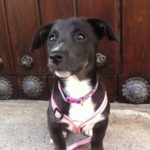 This little nubbin of a puppy was rescued by Francesca on a road trip with her husband. She was teeny-tiny and full of parasites. Francesca has fostered her in her home, and Tomasa is a sweet, friendly pup, good with dogs and great with people.