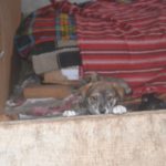 This is one of six puppies who were rescued along with their mother from Escuintla. The mother was very ill and could not swallow any food. Rescuer Francesca took her to her veterinarian and under sedation he found that she had a splintered chicken bone caught in her throat which prevented her from swallowing. Subsequently, they discovered that she has difficulty chewing due to an old, poorly healed fractured jaw.