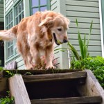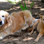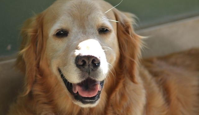 Yancy is a senior Golden Retriever. We think he is between eleven and twelve years old. He was found after being struck by a car while running along the Pan American highway. He had three badly broken legs. He was brought to another rescue group and unfortunately left untreated for several weeks due to lack of funds. When we heard about him he had finally had a surgery to repair one of his legs, but the other two breaks were consolidating and so had to be left as they were. Because of this, Yancy has a decided “hitch in his giddyup” when he walks.