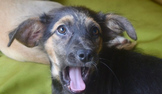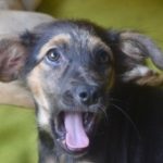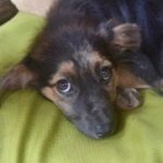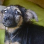 Yoda is one of two females in the litter. She had every kind of parasite imaginable, and had a severe case of sarcoptic mange. She has made a stunning recovery in her wonderful foster home and is now healthy and her hair is growing in. She is ready for adoption. Yoda is the smallest puppy in the litter and earned her name for her funny, sideways aiming ears and her scruffy appearance.