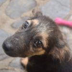 We found five severely malnourished and sick puppies living with a poor family in a shack in a coffee farm. The family has several dogs and of course, they keep breeding. We agreed to take the puppies conditional that the family allow us to spay and neuter their adult dogs. They agreed, and in came five little scruffy black and tan pups.